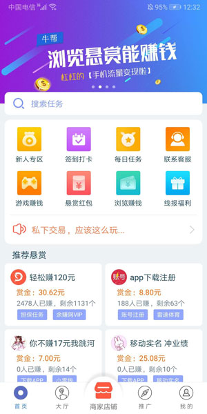 安卓版下载 大小:9.66 MB 下载:3256次 牛帮 支 持:安卓 分 类:手机软件 大 小:9.66 MB 版 本:2.6.1 评 分: 开发者:重庆余赚网络科技有限公司 下载量:3256次 发 布:2020-03-14 10:01 手机扫码免费下载 #牛帮截图 #牛帮简介 牛帮 - 悬赏众帮平台,手机赚钱软件!是重庆网赚科技有限公司旗下的一款悬赏任务平台。为商家提供项目推广,任务分发的渠道。为用户提供赏金任务,兼职信息的平台。1元起提现,提现秒到账! *好的手机赚钱软件: 商家发布任务(可以包含注册,下载,体验,分享,试用等形式)。 用户完成任务,可获取赏金报酬。还有红包,各种奖励可以拿。客服QQ:2461348249、纠纷客服QQ:744680685,客服交流QQ群:604285219